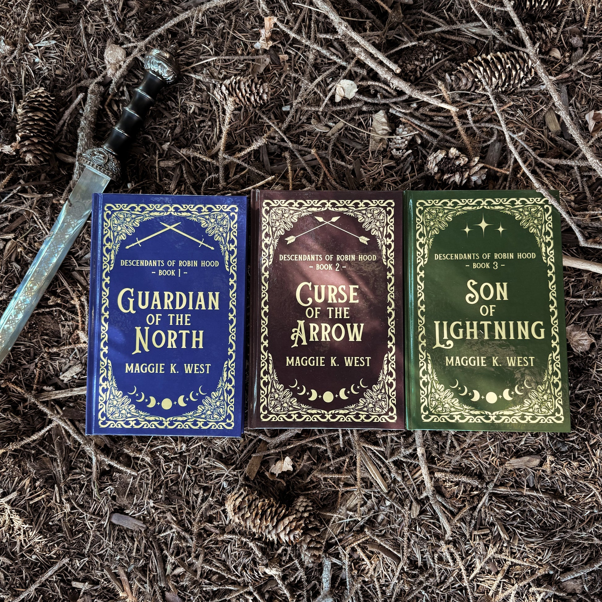 Do you love books that look like ancient tomes discovered in mystical ruins? You've come to the right place! These exclusive special edition hardcovers of the Descendants of Robin Hood series are only available here, and are personally signed by Maggie K. West.
